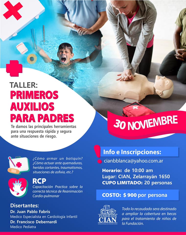 Agregamos una nueva fecha al Taller de Primeros Auxilios Para Padres donde trabajamos en conjunto para poder dar respuesta ante situaciones de riesgo. Luego de completar el cupo en el encuentro del mes de agosto, decidimos agregar una nueva fecha para todos aquellos que se quedaron afuera. Nos encontraremos el sábado 30 de noviembre a las 10 hs en nuestra fundación: Zelarrayán 1650.