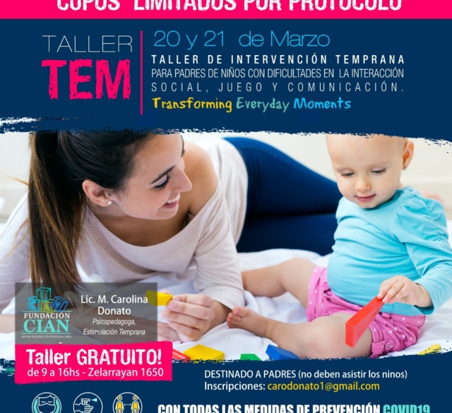 En CIAN estamos felices de comunicar que retomamos los encuentros presenciales con un nuevo taller de Intervención Temprana. Está destinado a padres de niños con dificultades en la interacción social, juego y comunicación, y será dictado por Carolina Donato, psicopedagoga de nuestra institu...